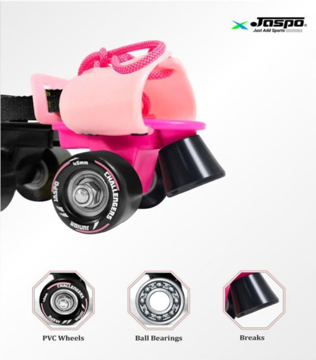 Upgrade Your Skating Experience with Challenger Senior Quad Skates! Step up your roller skating game with the Challenger Senior Quad Skates, designed for kids ages 3-7 years, who are new to skating or looking to improve their skills. With an adjustable fit that grows with your feet, these skates offer comfort and durability, making them a great choice for anyone looking to get into skating. Featuring vibrant colors, and Premium 45mm 85A PVC Wheels, ABEC-7 Bearings, these Quad skates are perfect for all your skating adventures.