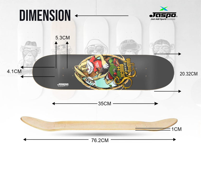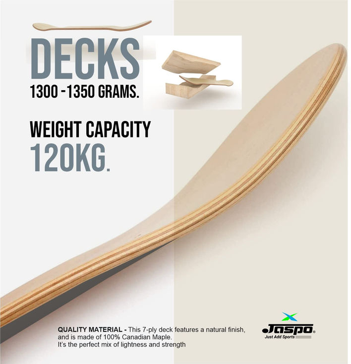 Jaspo Adventure 31"x8" Canadian Maple Skateboard is a 7-layer strong board, complete and fully assembled for smooth rides and tricks.