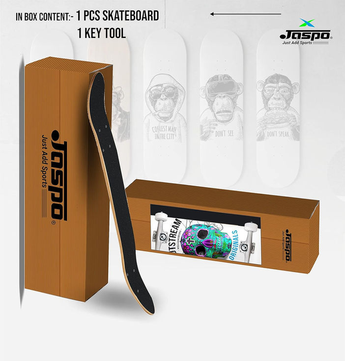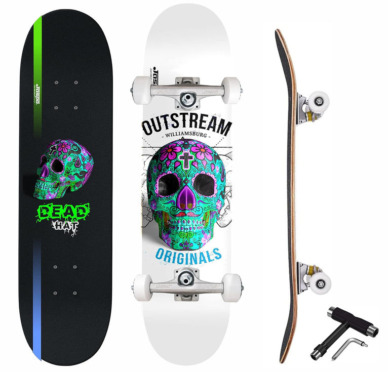 Jaspo Dead Hat 31 x 8 skateboard made with 7-layer Canadian maple, fully assembled with PU wheels and ABEC-9 bearings