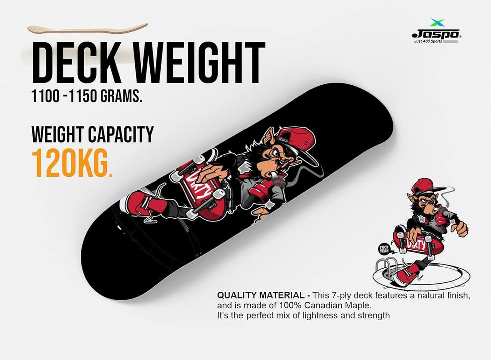 Jaspo Dirty Monkey 31 x 8 Canadian maple 7-layer skateboard fully assembled for smooth and stable rides