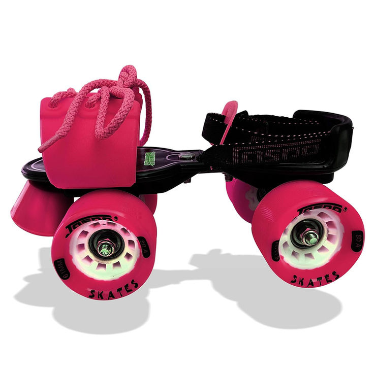 The Adjustable Skate is just the thing to easily glide indoors and outdoors. Discover the joy of skating with Jaspo, Indian Skate Company since 1960 SPECIAL FEATURES Adjustable and light weight senior roller skates with adjustable length from 21 cm to 27 cm Light weight fiber chassis and adjustable in size Weight Handling up to 70 kg. Toe Stopper for great control Fitted with Florescent TPU Wheels Suitable for age group 6-14 years