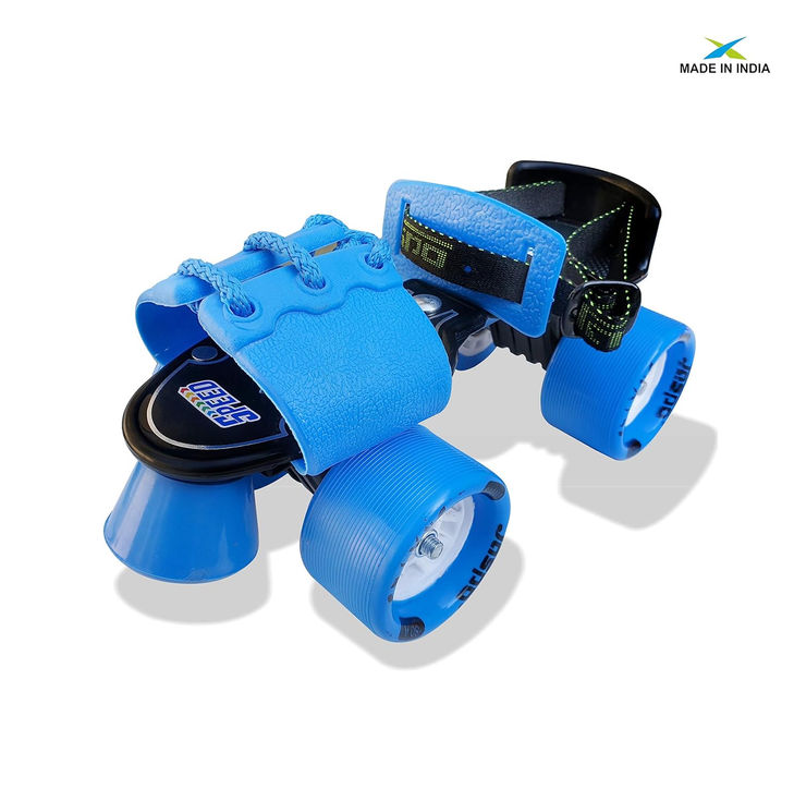 The Adjustable Skate is just the thing to easily glide indoors and outdoors. Discover the joy of skating with Jaspo, Indian Skate Company since 1960 SPECIAL FEATURES Adjustable and light weight senior roller skates with adjustable length from 21 cm to 27 cm Light weight fiber chassis and adjustable in size Weight Handling up to 70 kg. Toe Stopper for great control Fitted with Florescent TPU Wheels Suitable for age group 6-14 years