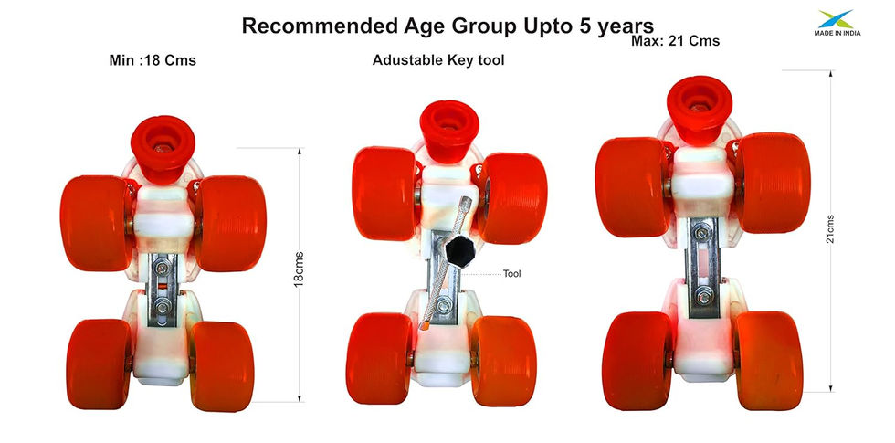The Adjustable Skate is just the thing to easily glide indoors and outdoors. Discover the joy of skating with Jaspo, Indian Skate Company since 1960 SPECIAL FEATURES Adjustable and light weight senior roller skates with adjustable length from 21 cm to 27 cm Light weight fiber chassis and adjustable in size Weight Handling up to 70 kg. Toe Stopper for great control Fitted with Florescent TPU Wheels Suitable for age group 6-14 years