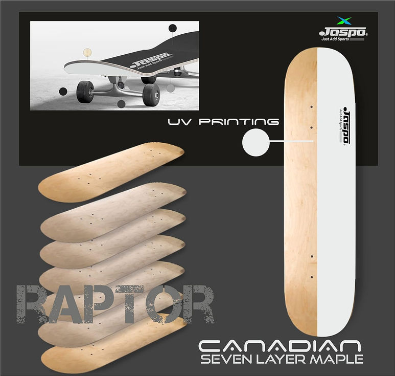 Jaspo Hawk-Eye 31x8" Canadian Maple 7-layer Skateboard - Made in India.