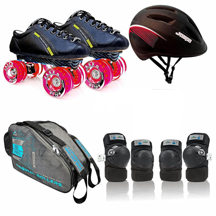 Jaspo Hyper-X Intact Quad Roller Skate shoe-like design provides low ankle support without sacrificing comfort. The shoe skates in the kit are made of PU material, which is known for its durability. The 65 mm PVC wheels provide a smooth skating experience, and the customized ball bearings ensure efficient rolling. This combo kit is recommended for beginners and learners, which means it is designed to help kids who are new to skating get started on the right foot. With its practice quality shoe skates and beginner-friendly features, such as PU shoes and customized ball bearings, it aims to provide a comfortable and supportive skating experience. The Hyper-X Int Shoe Skate combo typically includes shoe skates, a helmet, knee pads, elbow pads, and a bag. These items are designed to provide protection and convenience for individuals who enjoy skating. The shoe skates in the combo are likely adjustable and can be converted from regular shoes into skates. This feature allows users to wear them as regular shoes when not skating. The helmet is an essential safety component that protects the head from potential injuries. Knee pads and elbow pads help cushion falls and protect these vulnerable areas.