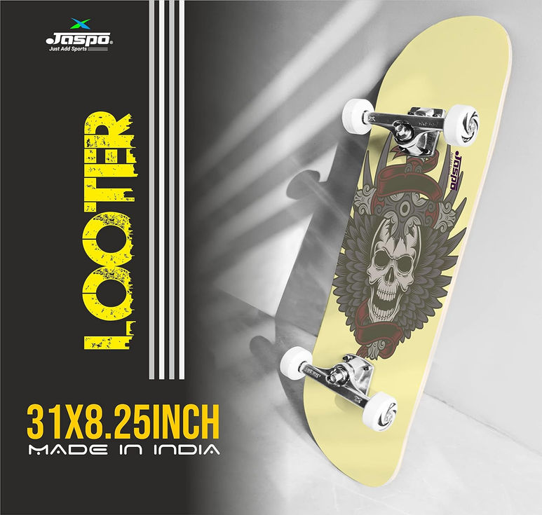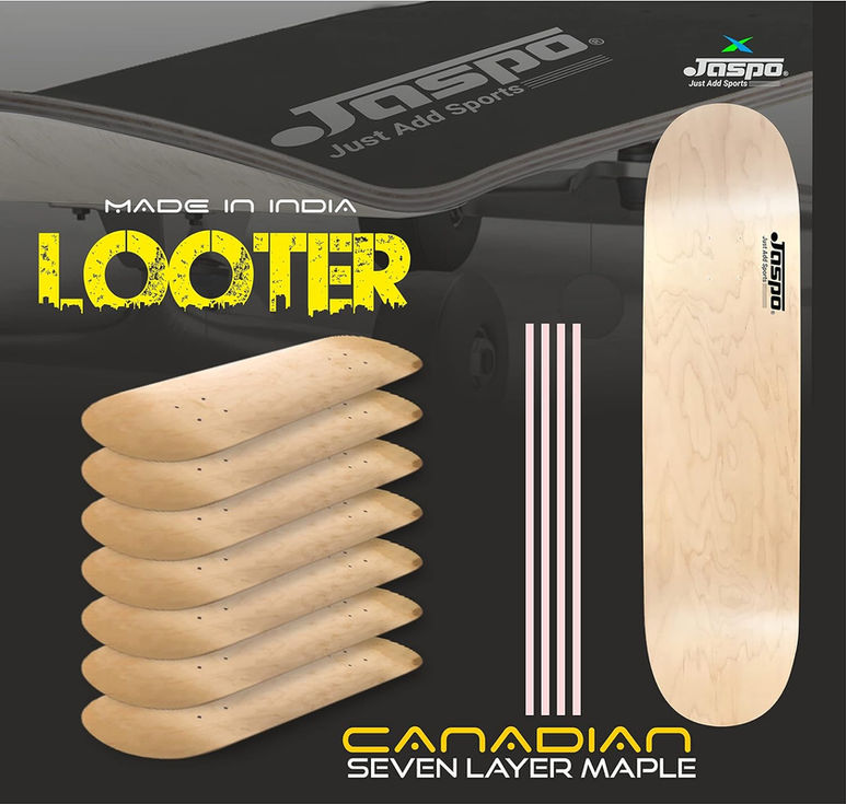 Jaspo Looter 31x8" Inches Canadian Maple 7-Layer Skateboard - Made in India.