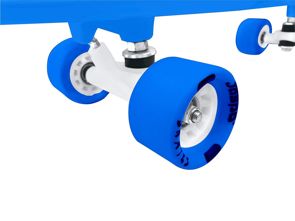 The Jaspo Mini Cruiser (22.5x5.5", Blue) is a durable, fully assembled skateboard for kids, supporting up to 60 kg
