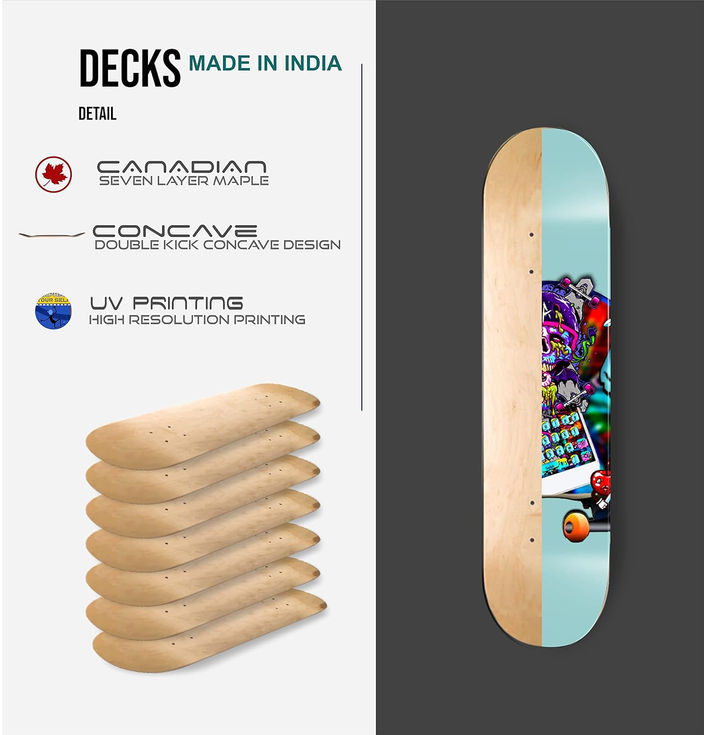 Jaspo Overloaded 31x8" Inches Canadian Maple 7-layer Skateboard - Made in India.