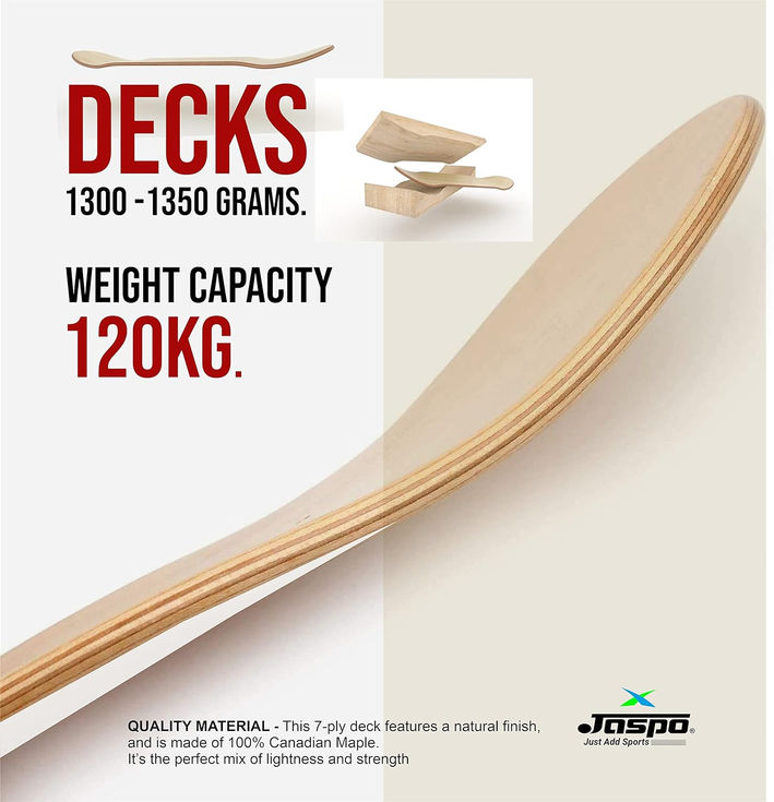 Sturdy & Durable: Freedom Spirit 31 "x 8" complete board is made of seven layers of Canadian maple. it can carry up to 100kg/220 LBS. 95A PU wheels, ABEC-9 bearings with alloy truck flexible enough to ride.Smooth & Steady: Smooth (95A) high rebound PU wheels with ABEC-9 precision bearings and 95A high rebound PU bushing, which can not only provide stable and strong grip while skating but also play a strong shock absorption effect.Better Control: Double-kick concave structure is easy to break. It is ideal for beginners & professionals to do basic stunts and tricks. Non-slip grip tape plays a very good anti-skid and smooth role, which is very good to ensure your safety and you can play your own control.STRONG & SMOOTH WHEELS ? Skateboard wheels are good quality made for an easy ride over any surface. Wheels are super soft 53mm 95A polyurethane wheels that give a noiseless riding experience.IN THE BOX CONTENTS: 1 SKATEBOARD WITH T-TOOL