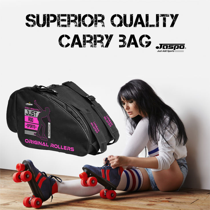 Jaspo Pink Grey Roller Skates, Inline Skates, Quad Skating Bag (12x11x9 inch)