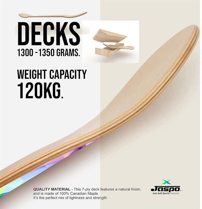 Jaspo Polygon 31x8" Inches Canadian Maple 7 - layer Skateboard - Made in India.