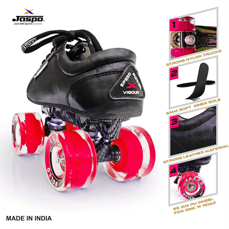 Jaspo Pro Hyper Furious Quad Shoe Skates with ABEC 9 bearings and 65mm PU wheels for all ages in vibrant colours