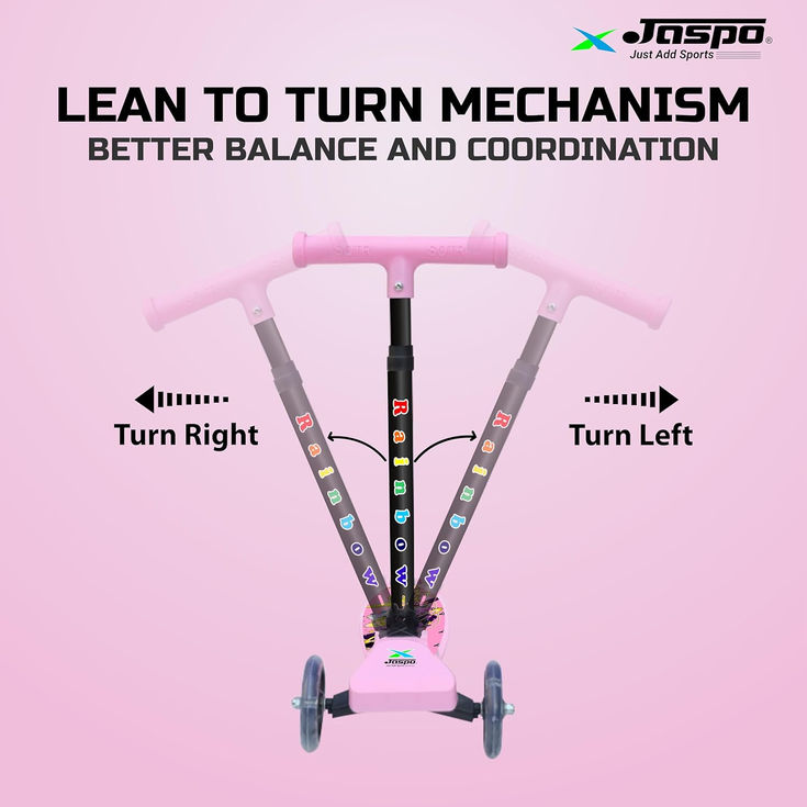 The Jaspo Rainbow Kids Kick Scooter is a lightweight and durable scooter designed for children aged 3 and up. Featuring a plastic and steel body, it can support up to 25kg, ensuring a safe and comfortable ride. The scooter comes with vibrant LED light-up wheels for extra fun and an adjustable handlebar to accommodate growing kids. Perfect for beginners, it offers easy control and maneuverability, making it ideal for young riders developing their coordination and balance. With a sleek design and sturdy build, this scooter promises years of enjoyment and adventure.