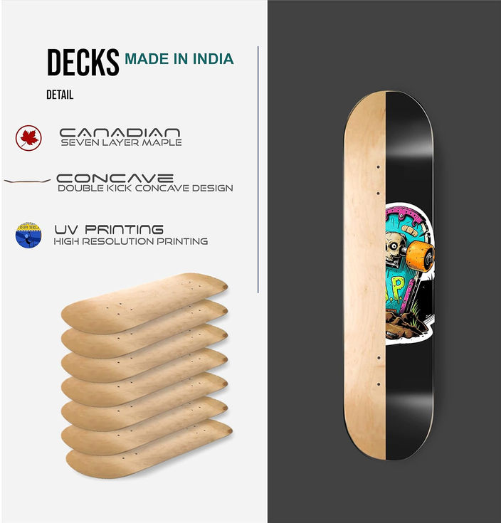 Jaspo RIP 31x8" Inches Canadian Maple 7 - Layer Skateboard - Made in India.
