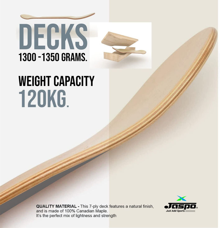 Jaspo Striker 31x8" Inches Canadian Maple 7 - layer Skateboard - Made in India.