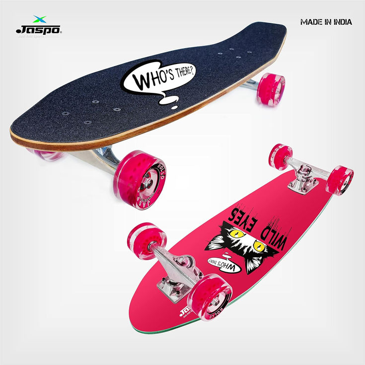 The JASPO Wild Eyes Cruiser Board (28x8") is a durable 7-layer maple skateboard, fully assembled for smooth, stable, and ready-to-ride performance