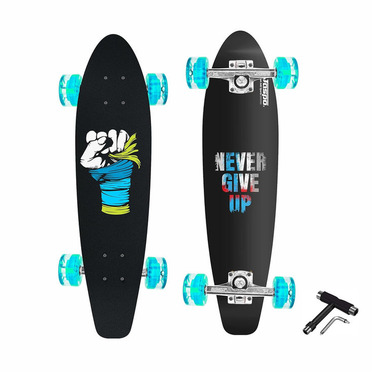 Never Give Up Cruiser (28"x8") – Durable 7-layer maple board with aluminium trucks, offering smooth rides and lasting performance for all riders
